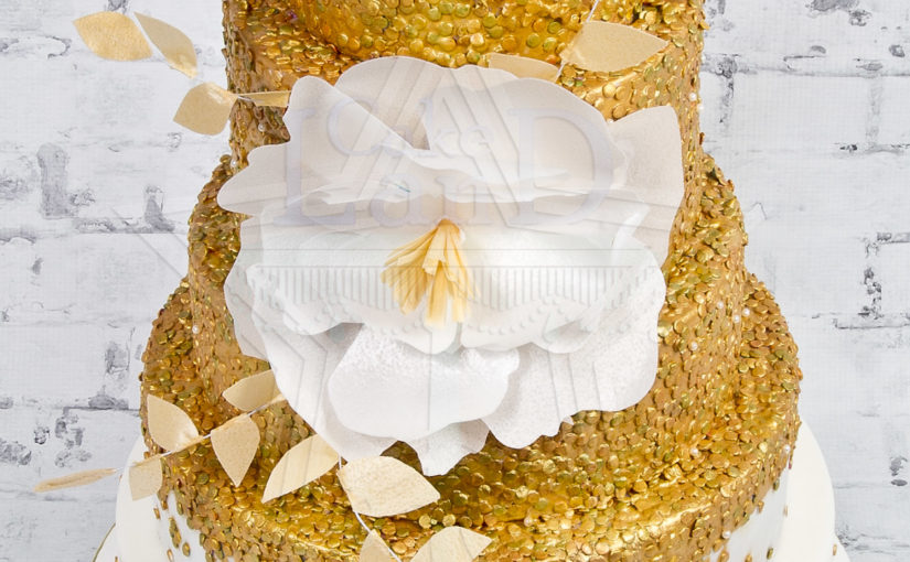 gold sequin wedding cake